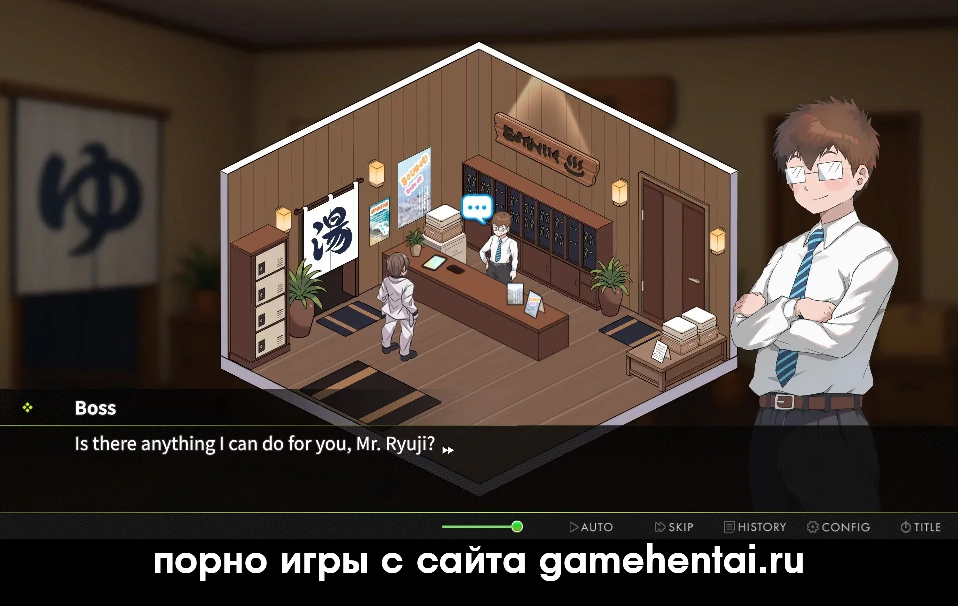 Immoral Bathhouse (в переводе «Аморальная баня») это симулятор управления с элементами песочницы и дейтинга, где ты играешь за парня по имени Рёдзи / Ryouji. Сюжет начинается с того, что его родной отец подсыпал ему наркотики и оставил с кучей долгов. В довесок ко всему, Рёдзи подхватывает какую то мистическую болезнь, из за которой ему нужно регулярно контактировать с женскими феромонами, иначе он просто умрёт или разорится на больницах. Чтобы выжить, он решает взять на себя управление старой баней «Тенрю». Теперь твоя задача не только отмывать бабки, но и соблазнять посетительниц, чтобы поддерживать своё здоровье.